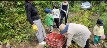 お母さん達は子供達と一緒に畑をしたり、美味しい飲み水を作る研究、山の山菜について話し合っています。